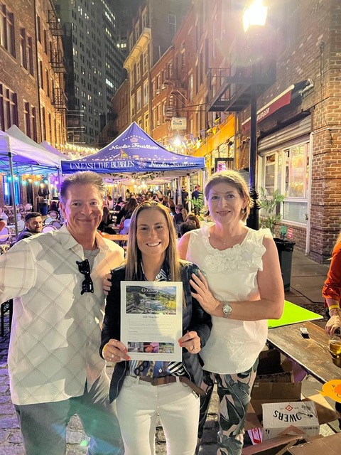 “Guests from across New York’s Irish community mingled comfortably on the cobblestones while enjoying delicious canapes and beverages which were generously provided by local bar owner, Ronan Downes.”