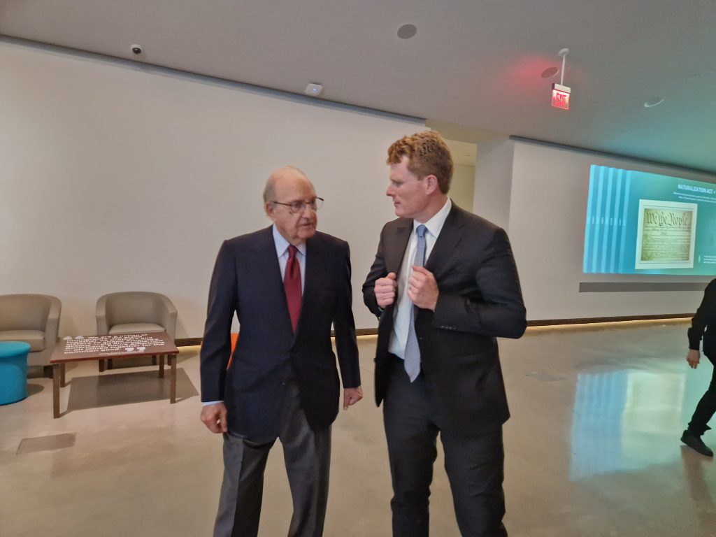 In a rare public appearance together, former White House Special Envoy Senator George Mitchell joined his successor, Joe Kennedy III to pass on wisdom and encouragement in his vital trans-Atlantic role.