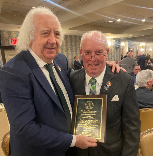 It was great to see that Martin Dunne got the recognition he deserves for Sixty Years as a Saint Patrick’s Day Parade Volunteer and Cathedral Committee and formation committee. Martin is also a past President of the Irish Business Organization and let me tell yea that there is no stopping him now as he has lots more to do for the Irish community, good on yea Martin well deserved.