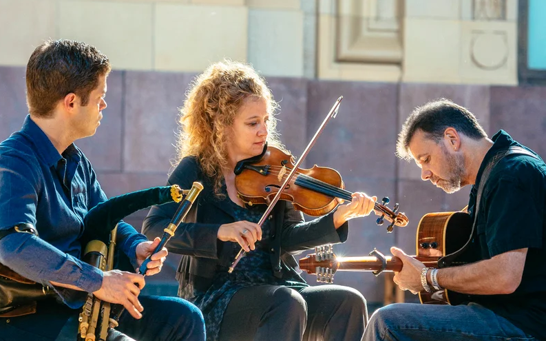 A road-tested, audience-approved trio of Irish musicians, Open The Door For Three released “A Prosperous Gale,” their fourth full-length album this September. It will be available on all digital platforms and CD, and is available for pre-order on Bandcamp. This team of veteran Irish traditionalists includes fiddle player Liz Knowles, uilleann piper Kieran O’Hare and Dublin-born singer and bouzouki player Pat Broaders. Their music combines tunes unearthed from centuries-old collections with newly composed melodies and fresh arrangements of songs old and new. Together, they possess the unmatched energy of a trio of good friends playing great Irish music together. Throughout there are homages to the musicians and bands they grew up listening to.