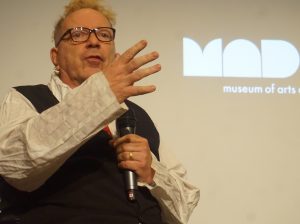 Introduced by MAD Director Chris Scoates, this 63-year old emperor of aggravation and aggression conducted an entertaining Q&A before an small set of journos — yours truly included. Thankfully, most of them were either too timid or terrified to challenge Mr. Lydon with piercing queries, leaving it to me to do the job and get a lot of voice time. What follows is much of that dialogue.