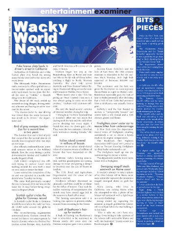 Park visitors complained zoo offi- tion, said the grasshoppers are causing home with a firefighter. catastrophe.