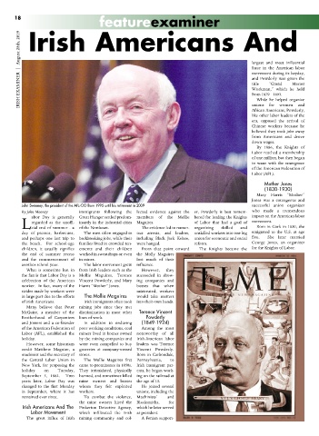 abor Day is generally Great Hunger settled predom- members of the Mollie bered for leading the Knights impact on the American labor