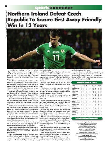 Ireland waltzed through the first half with 45 min- gather Ladislav Krejci’s shot before the goalkeep- PREMIER LEAGUE FIXTURES