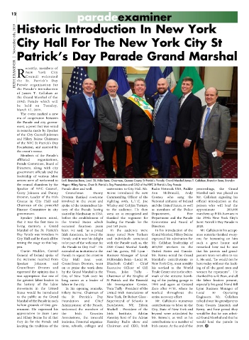 Marshal of the St. Patrick’s later. He said, “as a proud In the audience were In his introduction of the Mr. Callahan in his accept-