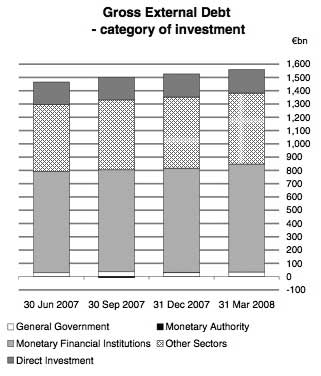 At the end of March, the Ireland's gross external debt amounted to €1,559bn, representing an increase of almost €33bn from the end of the previous quarter and reflects a continuing upward trend in the level of external debt liabilities over the last two years.