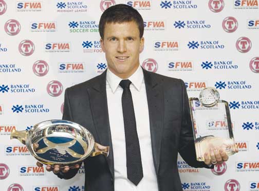Celtic's Gary Caldwell picks up the Scottish Football Writers Association Player of the Year and the Tennent's International Player of the Year award (SNS)
