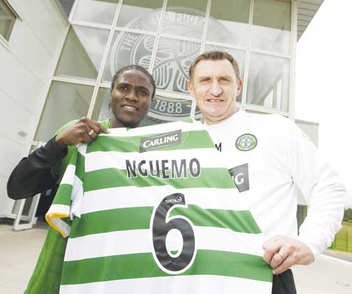 Celtic boss Tony Mowbray (right) finally gets his man as he welcomes Nancy midfielder Landry N'Guemo to the club on a season-long loan (SNS)