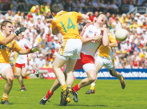 But this was as close as Antrim would get as once more the unstoppable Tyrone machine kicked into high gear with lovely scores from the excellent Cavanagh and Kevin Hughes.