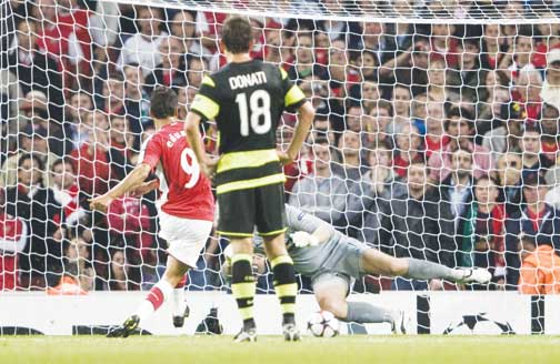 Eduardo scores from the penaly spot for Arsenal (SNS)