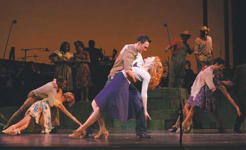 Woody (Cheyenne Jackson) dancing with Sharon, played by the luminous Kate Baldwin (Joan Marcus)