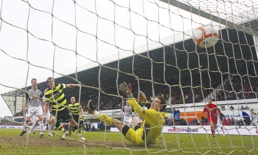 Finding himself one-on-one with Fleming, he couldn't squeeze the ball in but the rebound out to the touchline was found by Kamara, who placed another good ball into the six-yard box. In the swirling confusion, hapless defender Calum Woods found himself putting the ball into his own net.