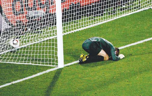 England's Robert Green concedes USA's first goal scored by Clint Dempsey (INPHO)