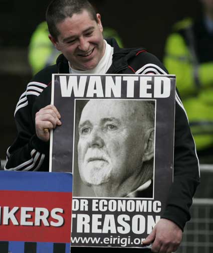 A protester outside the Anglo Irish Banks HQ on St Stephens Green in Dublin in May (Photocall)