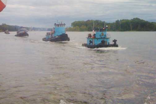 Tugboats moving down the Erie Canal in the 13th Annual Tugboat Roundup