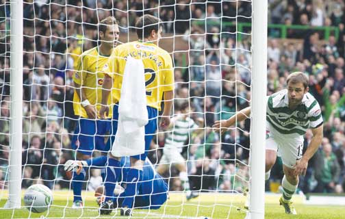Celtic now started to take control of the game, though the Accies were wasteful when they spurned a great scoring chance when Forster saved a header from Canning.
