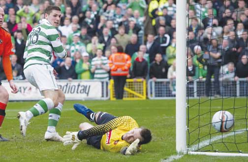 Gary Hooper looks on as his late effort finds the net to win the match for Celtic (SNS))