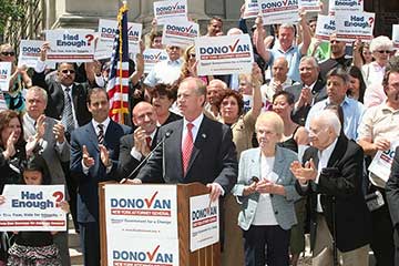 I've known Mr. Donovan since he first ran for district attorney in Staten Island in 2003, and his win was against great odds because there hadn't been a Republican in that position in over 50 years. He was re-elected in 2007 with nearly 70% of the vote and the endorsement of the Republican, Conservative, and Independence parties. Prior to his administration, the borough had a very low conviction rate. By 2006, however, his office led the entire city with the highest conviction rate for felony indictments. That record continues today.