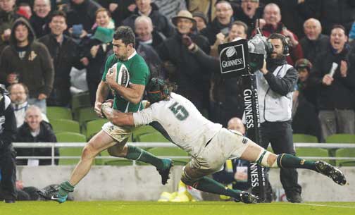 The errors continued from both sides, with knock ons a regular occurrence. The greasy ball and force of the tackles saw defences reign, but a leg-pumping break from Heaslip got Ireland on the front foot, and the crowd responded.