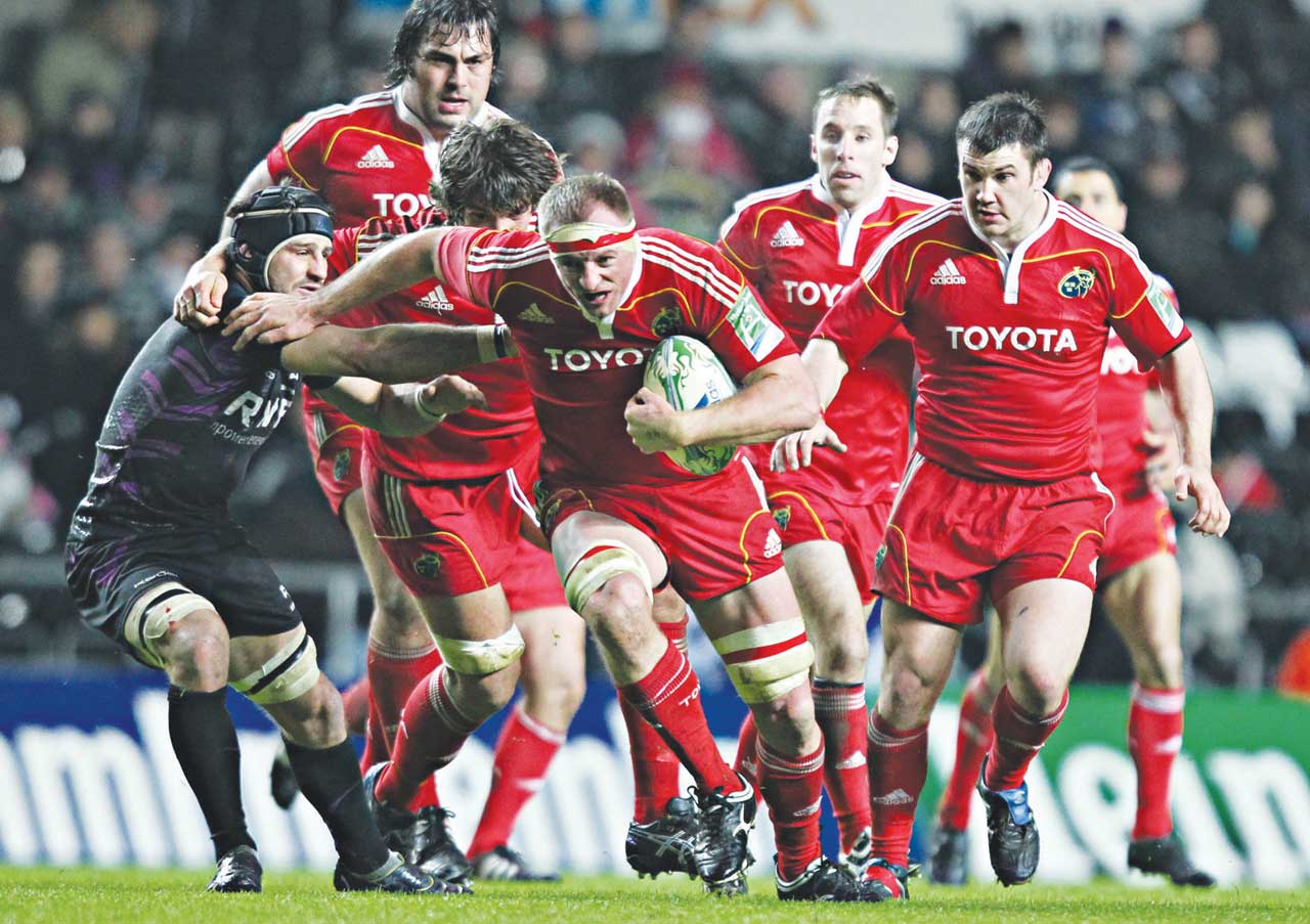 The 2006 and 2008 Heineken Cup winners continued to pepper the Ospreys line from the resulting scrum but the Ospreys somehow held out before forcing Munster to spill possession just two metres short.