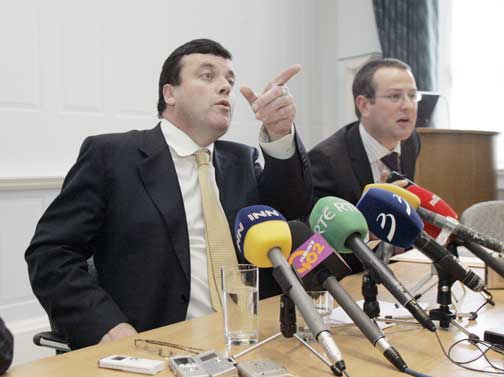 Former Finance Minister Brian Lenihan announcing the bank guarantee after the crash of 2008 (Photocall)