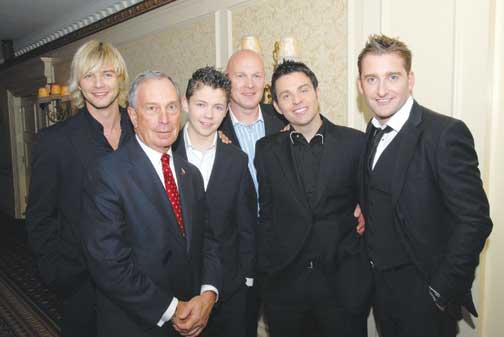 Mayor Michael Bloomberg with Celtic Thunder. Damien McGinty is to the right of the Mayor (James Higgins)
