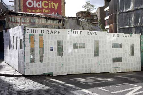 The Cloyne Report, which scrutinises how both Catholic Church and State authorities handled allegations of abuse against 19 clerics in the Co. Cork diocese, covers a free space in Temple Bar, Dublin (Photocall)