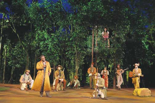 The play is set in the rural South, circa 1840, so there are pre-Civil War era costumes, bluegrass music, and, at the top, a big wooden fort.