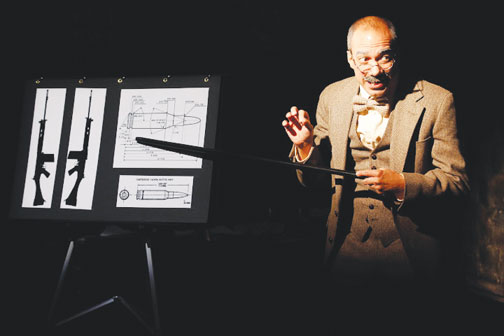 The building, according to the news, a a pretty newscaster (Christa Scott-Reed) informs us, is "occupied." And the play opens with a judge (John C. Vennema) presiding over a fact-finding inquiry about the deaths of three civilians, who supposedly shot first at the troops surrounding the building.