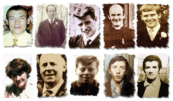 They are Father Hugh Mullan, 38, Francis Quinn, 19, Daniel Teggart, 44, Joan Connolly, 44, Noel Phillips, 19, Joseph Murphy, 41, John Laverty, 20, Joseph Corr, 43, Edward Doherty, 31, and John McKerr, 49.