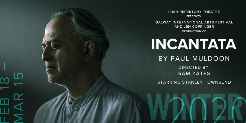 The Irish Repertory Theatre will present Incantata, a Galway International Arts Festival and Jen Coppinger Production on the Francis J. Greenburger Mainstage. Written by Paul Muldoon, directed by Sam Yates and starring Stanley Townsend this production will run from February 18 to March 15, 2020.