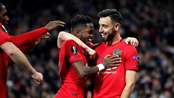 Bruno Fernandes shone and Manchester United fan Odion Ighalo netted his first goal for the club as Ole Gunnar Solskjaer’s men roared past 10-man Club Brugge in the Europa League.
