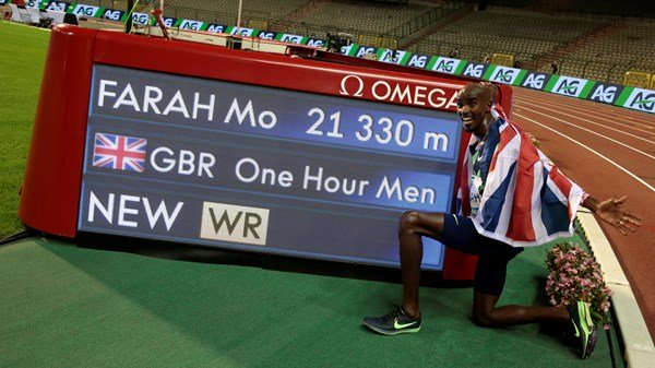 Farah covered 21.330 kilometers in an hour to break the previous record of 21.285km set by Haile Gebrselassie in 2007.
