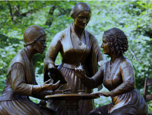 Or maybe, a visit to the recently unveiled statue depicting real women — not fantasy figures — in Central Park will provide the inspiration. The first such monument in the park’s 167-year history, it was sculpted by artist Meredith Bergmann and was commissioned by Monumental Women, a 14-foot-tall structure which honors three key figures in the women’s rights movement — Susan B. Anthony, Elizabeth Cady Stanton, and Sojourner Truth. They appear to be organizing, writing, and speaking, respectively, so as to signify the three essential elements of activism. Each had roots in New York, but died before American women gained the right to vote.