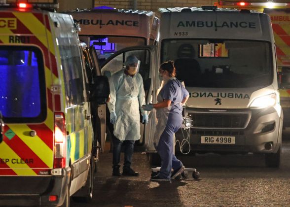 At one point outside Antrim Area Hospital, 17 ambulances containing patients were lined up outside the emergency department. Doctors were treating patients in the car park.
