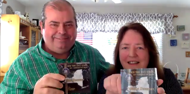 Harckham presented the Dennehys with Senate Commendation Awards during a virtual ceremony aired live on Facebook. The award ceremony included a quartet of special speakers: State Sen. Timothy M. Kennedy from Western New York, who has worked with the Dennehys on immigration issues over the years; Cathal “Chuck” McGreal, chair of the Hudson Valley Irish Fest; Mary Cronin, president of the Lady’s Ancient Order of Hibernians Peekskill Division 18; and Westchester County Legislator Colin Smith. Smith actually joined the online celebration from Riverfront Park in Peekskill, where the Hudson Valley Irish Fest takes place each year. Also attending the ceremony were Sue Sheridan, chair of the Peekskill St. Patrick’s Day Parade Committee; Clive Cronin, president of the Westchester County Ancient Order of Hibernians; and Brian O’Reilly, president of the Ancient Order of Hibernians Division 18 Peekskill. The Dennehys have been longstanding leaders in Westchester’s Irish-American community. Dan Dennehy has held numerous positions in the Ancient Order of Hibernians, including serving as National Director from 2016 to 2020; currently, he is the organization’s state Immigration Chair. He also founded the Hudson Valley Irish Fest, as well as the Hudson Valley Irish Center, which includes a substantial library focusing on Irish culture and history. Siobhan Dennehy has served since 2003 as executive director of the Emerald Isle Immigration Center in New York City, which provides assistance and immigration services to both Irish and non-Irish immigrant communities. She has also played crucial roles in organizing the Hudson Valley Irish Fest and running the Hudson Valley Irish Center. And while with the Peekskill Division 18 of the Lady’s Ancient Order of Hibernians, Siobhan organized multiple community events for all members of the Peekskill community on navigating the immigration system. The Dennehys also organized and participated in relief efforts to aid Irish American communities in affected areas in and around New York City after Hurricane Sandy. More recently, they worked during the coronavirus pandemic with Irish Americans in Support of Workers: The Meitheal an organization that provided meals and PPE to healthcare workers in New York City, Westchester, Rockland and Orange Counties. They also worked with Sláinte 2020, a collective fundraising effort, to assist the Irish American community in the tri-state area during the pandemic.