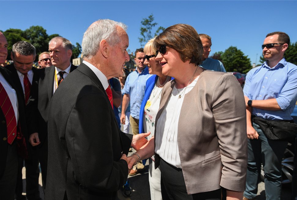 Mrs Foster and party colleague Christopher Stalford then stood with the rest of the sell out crowd as the Irish national anthem was played.