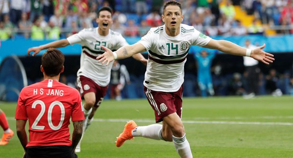 After they shocked world champions Germany in their opening Group F game, Mexico secured a 2-1 win as Carlos Vela tucked home a first-half penalty before Javier Hernandez wrapped up the points with his 50th international goal.