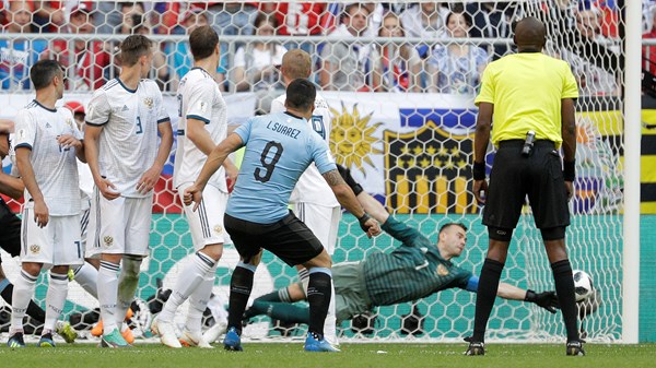 Suarez fired the South Americans in front with a sweetly-struck free-kick just 10 minutes in at the Samara Arena before Denis Cheryshev deflected Diego Laxalt’s effort past goalkeeper Igor Akinfeev 13 minutes later to double the advantage.