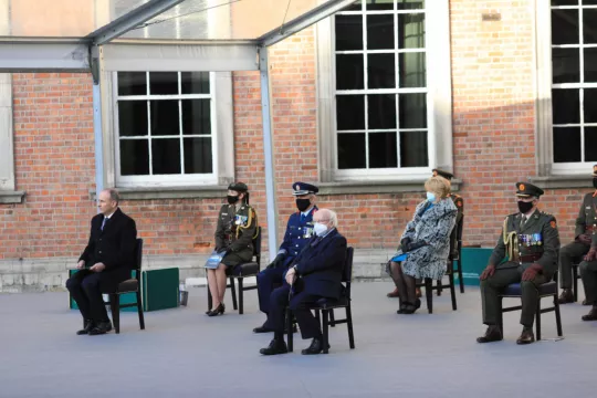 President Higgins was greeted by a Defense Forces guard of honor as he arrived.