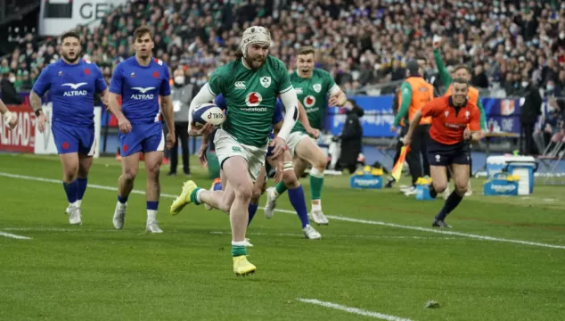 Jaminet’s fifth penalty of the evening initially stretched France’s advantage before Josh Van Der Flier powered over to claim a second try for the Irish, which was converted by Carbery.