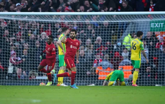 Mohamed Salah’s 150th Liverpool goal helped keep his side’s title challenge on track as they came from behind to beat Norwich 3-1 at Anfield.
