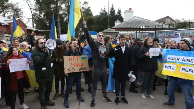 On Saturday afternoon, dozens of protesters once again gathered outside the Russian Embassy in south Dublin to call on Russia to end the attacks on Ukraine.