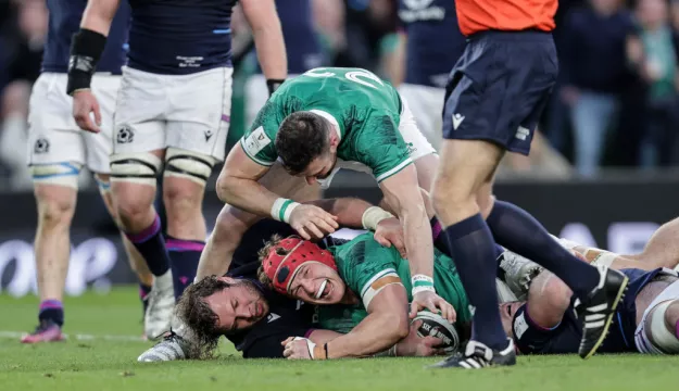 Veteran prop Healy struggled on that occasion but became the second member of the Irish front row to cross, bulldozing through the Scottish defense to claim his 10th Test try as the hosts took control.