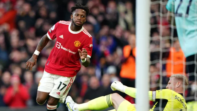 Schmeichel was at full stretch to parry Fernandes’ shot but, unluckily for the Dane, the ball fell to a grateful Fred, who made no mistake with the rebound.
