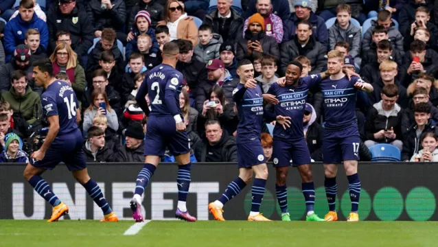City led with five minutes gone, with Raheem Sterling cushioning Rodri’s cross-field pass into the path of De Bruyne, who marked his 200th Premier League appearance for the club by rifling beyond Nick Pope for his eighth league goal in the last 13 games.