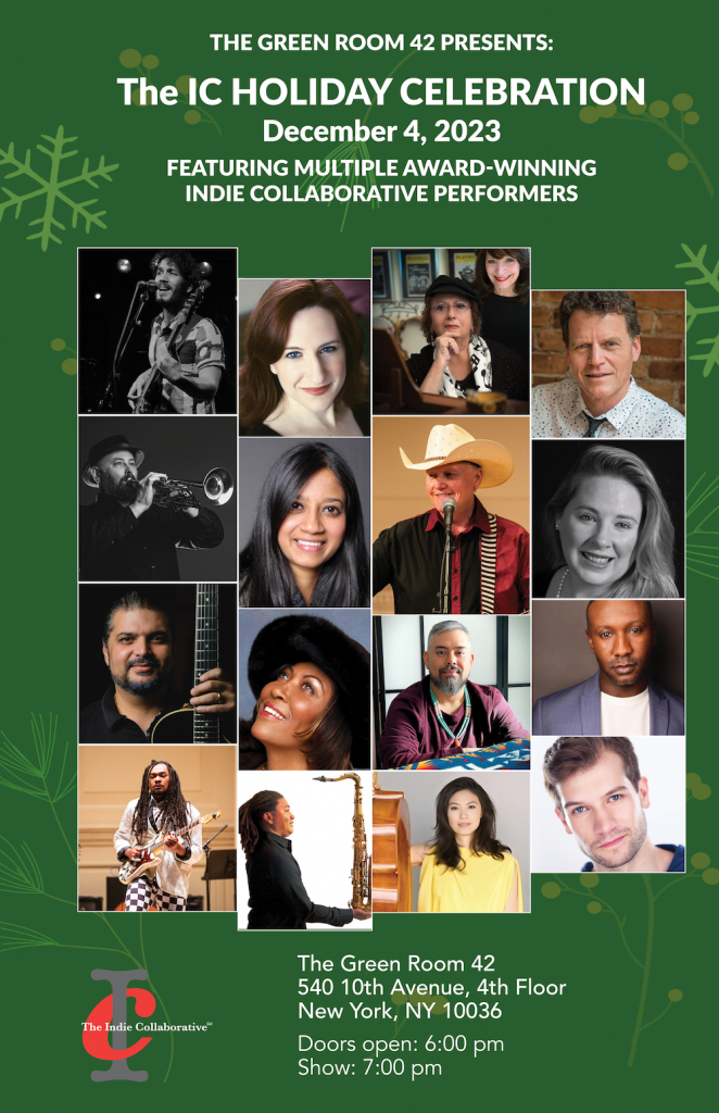 This month of December 2023, we are putting on our second holiday musical celebration on December 4th, in the Green Room /42, following on the one that we did in 2022 at Lincoln Center. The concert features these IC artists: Charu Suri, Hershel Garfein, The Bluestone Sisters, Yocontalie, Alex Otey, Grant Maloy Smith, Connor Chee, Elaine Romanelli , Herschel Garfein, Sophie Shao, Ryan VanDenBoom, The Jennifer Tibbets Singers, Noshir Mody, Jeane Carno-Rosenberg, Thomas Hutchings, Mowgli, Jerome Brooks, Jr., Ricky Persaud, Jr., Valerie Persaud, and Jeanne Rose. https://www.indiecollaborative.com/event-22