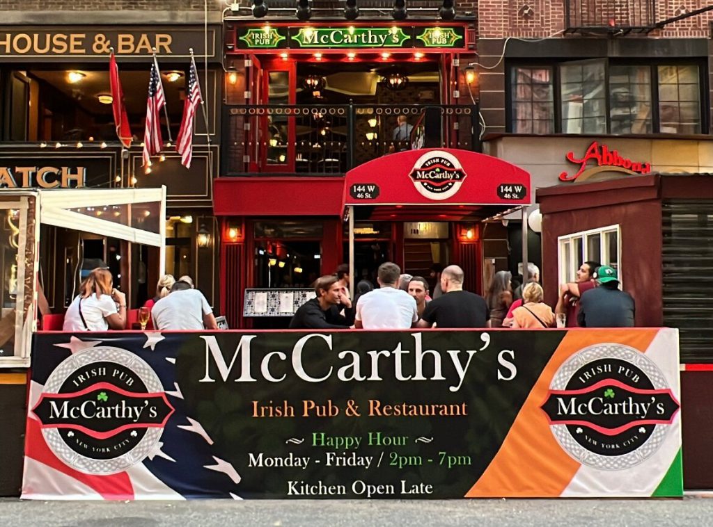 I was Out&About in Manhattan last week and I called into McCarthy’s, an authentic Irish pub conveniently located in Times Square on West 46th Street between 6th and 7th Avenues. I was there to meet some people for a pint when who walked in, only one of the owners himself Kieran Green, and guess what he gave me? One of the McCarthy’s T-shirts, now that was nice of him, I wonder if it is because of my name McCarthy?