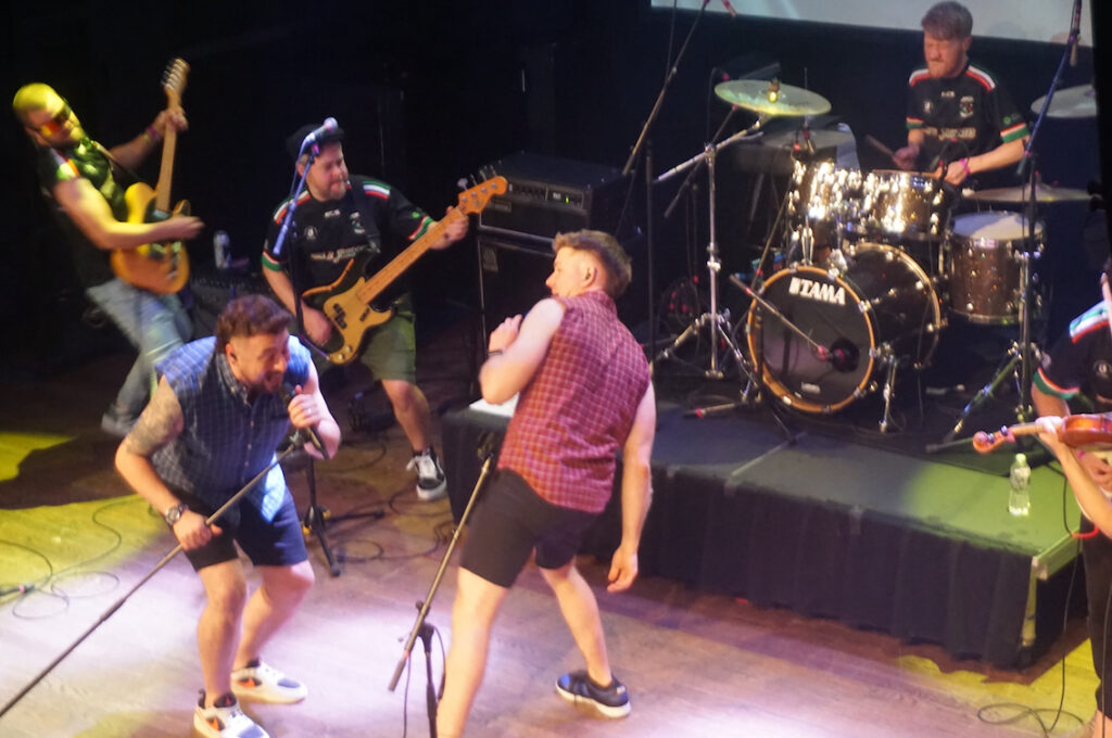 Not being familiar with their comic arc or their podcast — except for a glance of them online — I went to the show as a bare-ass newbie witnessing whatever came about. And what came was rock. Yes Irish tinged rock, but rock nonetheless. Most of their songs were punky power pop dosed with a few thrash, metal and hardcore stylizations thrown in. In some of the tunes, you could clearly hear the influence of their garage and punk predecessors such as Thin Lizzy and The Undertones. There was even a touch of a contemporary crew such as the DropKick Murphys thrown in. But with the live mix and the audience’s thorough engagement, the sound that came through was as their own.