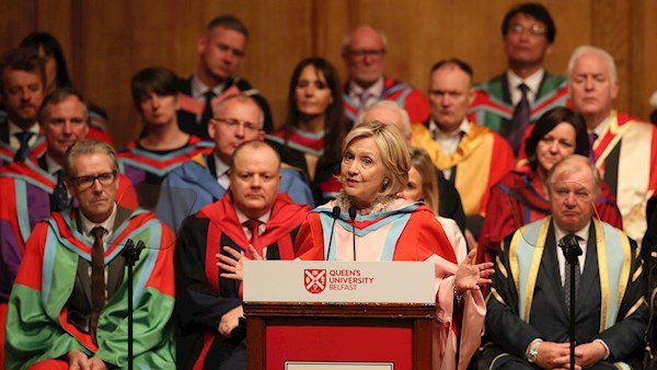 Ms Clinton thanked the university for the honor and spoke of her “great pleasure” at being in Belfast.
